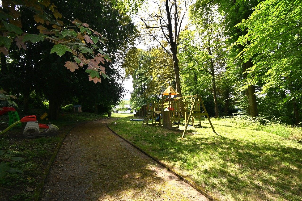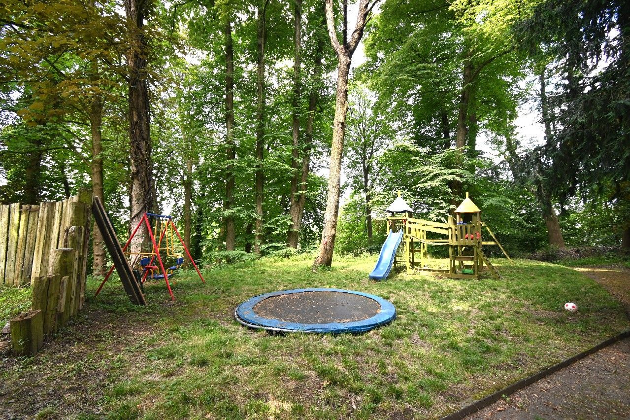 Das parkähnliche Grundstück ist über eine private Auffahrt erreichbar und beeindruckt durch seinen gewachsenen Baum- und Pflanzenbestand. Liebevoll gestaltet bietet der Außenbereich Terrassen, einen Grillplatz sowie ein echtes Paradies für Kinder mit eigenem Spielplatz.