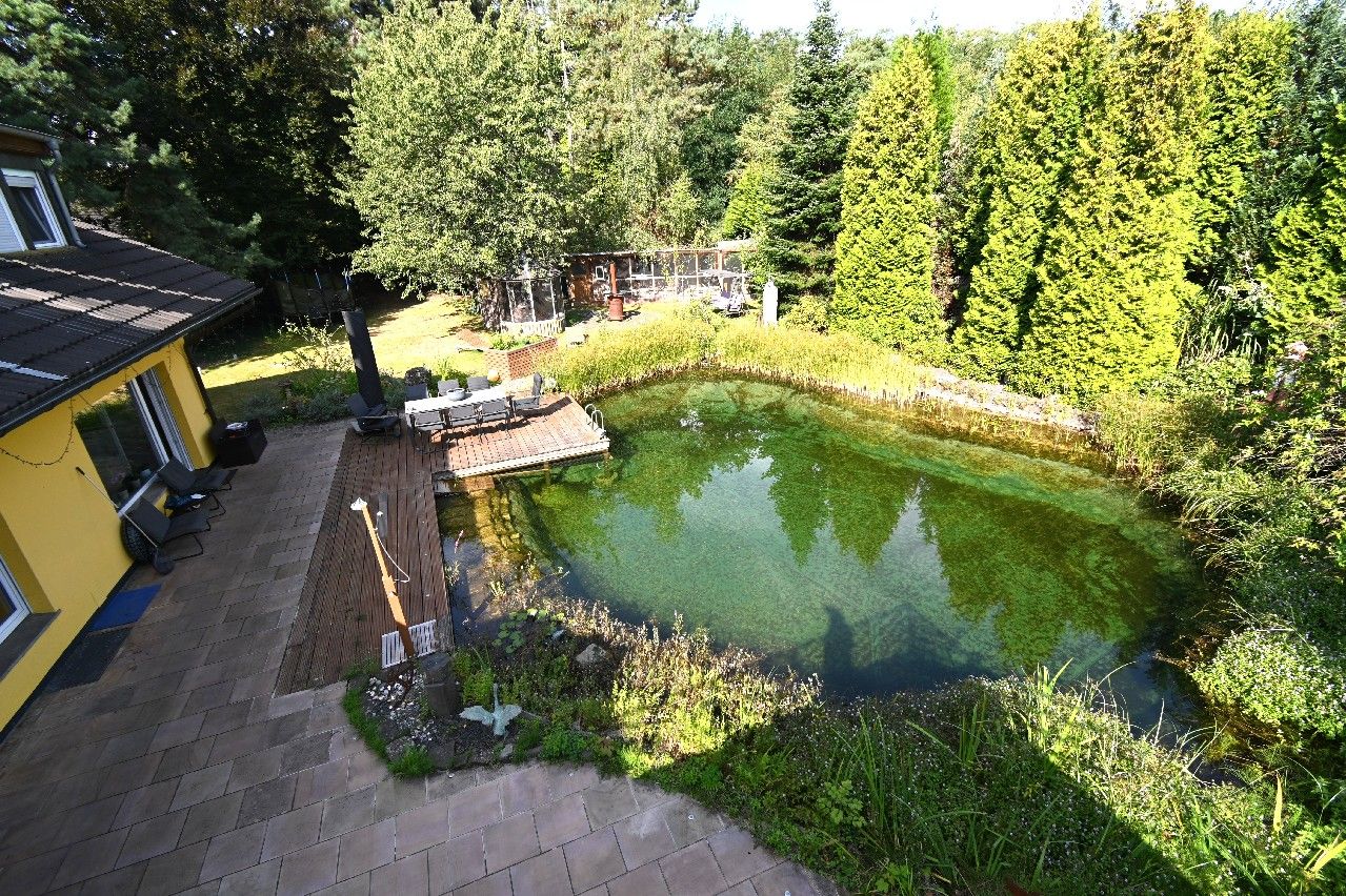 Schwimmteich (ca. 200 m² Schwimmfläche) mit Naturidylle und uneinsehbarem Garten und großzügigen Terrassen- und Außenbereichen