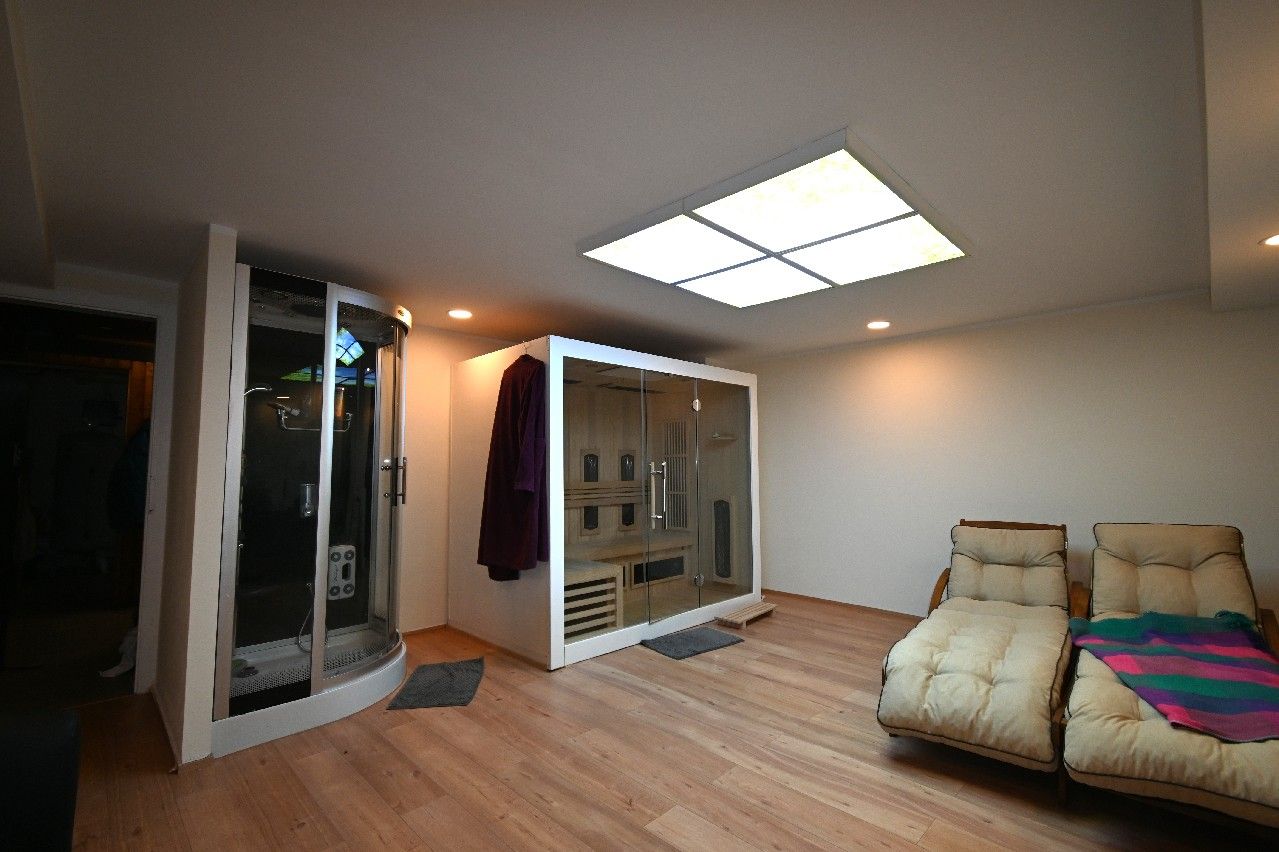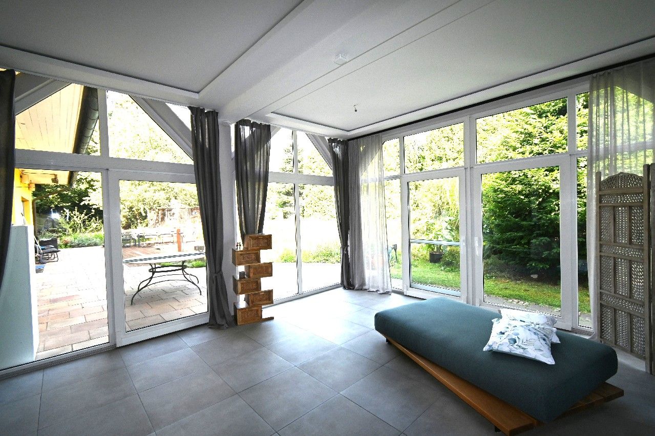 Im Erdgeschoss befinden sich zudem ein Schlafzimmer mit Zugang zum Wintergarten, ein Büro, eine separate Dusche sowie ein Gäste-WC.