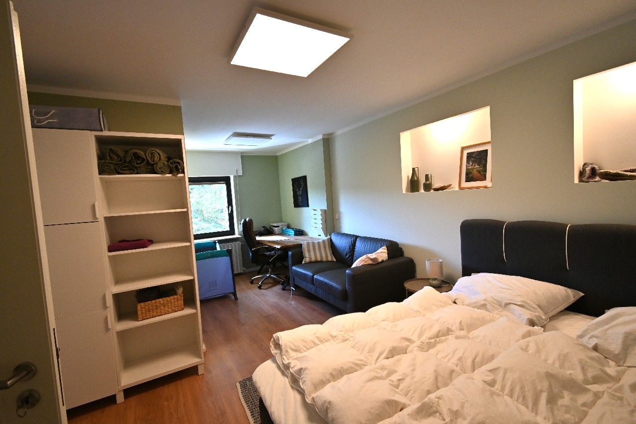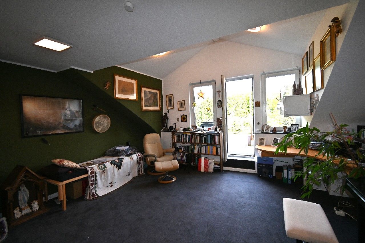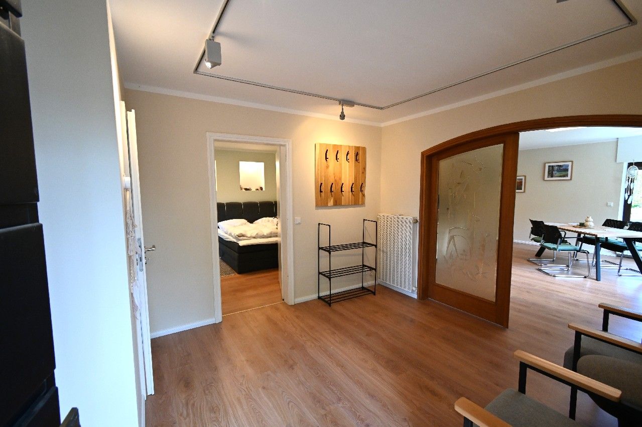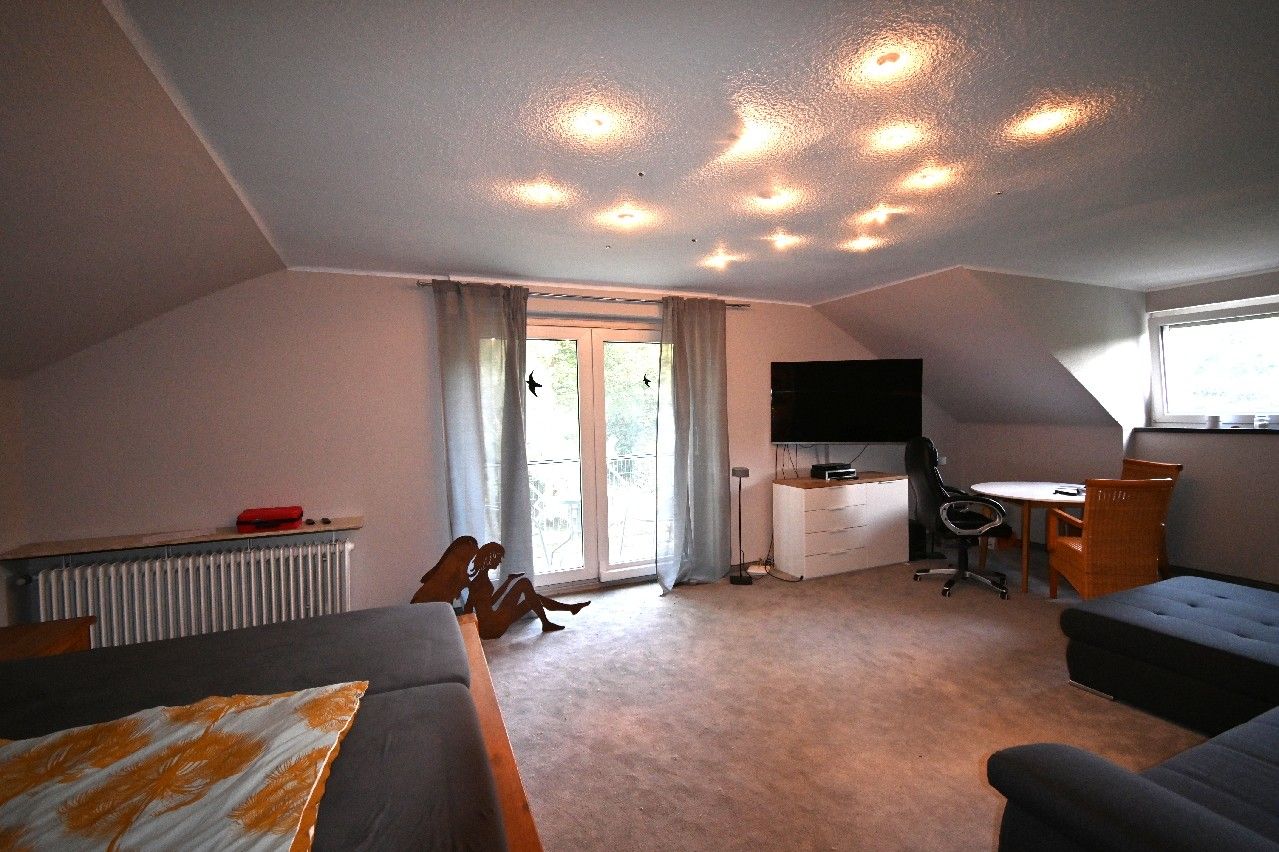 Die 1980 aufgestockte Einliegerwohnung über der Doppelgarage umfasst ca. 80 m² Wohnfläche und verfügt über einen separaten Zugang. Dadurch ergeben sich vielfältige Nutzungsmöglichkeiten sei es als Wohnung für Angehörige, als Büro- oder Praxisfläche oder zur Vermietung.