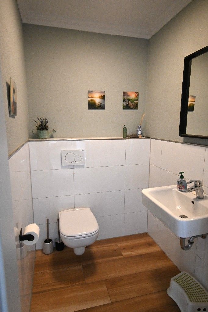 Auch im Obergeschoss überzeugen die Bäder durch eine geschmackvolle und zeitgemäße Ausstattung.