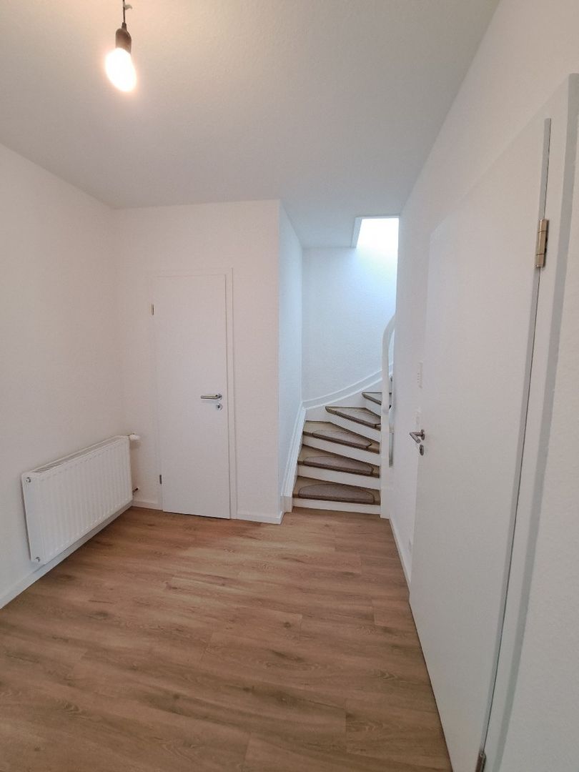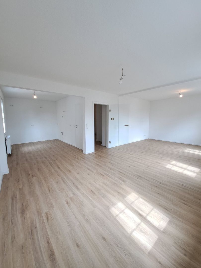 Im ersten Obergeschoss erwartet Sie ein großzügiger, Wohnbereich mit offener Küche. Ein schöner Bereich, um Wohnen, Kochen und Genießen zu verbinden. Auf derselben Ebene befinden sich außerdem ein modern ausgestattetes Duschbad mit Fenster, das erst vor zwei Jahren vollständig renoviert wurde und ein Abstellraum.
