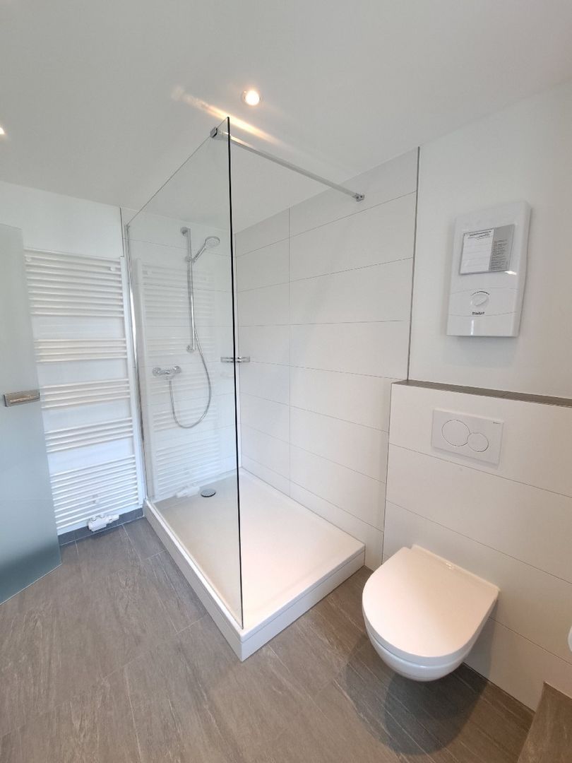 Die weißen Kunststofffentser sind doppelt verglast und die Böden sind einheitlich mit Vinyl ausgelegt, in den Bädern gefliest. Die beiden Duschbäder sind modern und ansprechend gefliest. Der Gemeinschaftswaschraum ist im Erdgeschoss des Nebengebäudes untergebracht. Hier stehen Ihnen auch ein Gemeinschaftstrockner sowie ein Trockenbereich zur Verfügung. Auf dem Grundstück gibt es außerdem einen Gemeinschaftsgarten, den sich insgesamt fünf Parteien teilen. Aufgrund der Größe findet hier jeder Mieter einen schönen Rückzugsort. Außerdem können Sie für monatlich EUR 80,00 eine Garage anmieten.